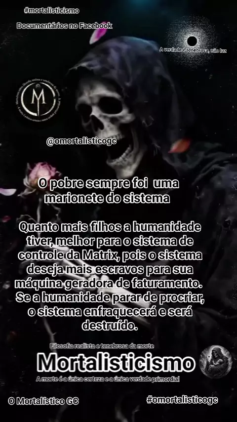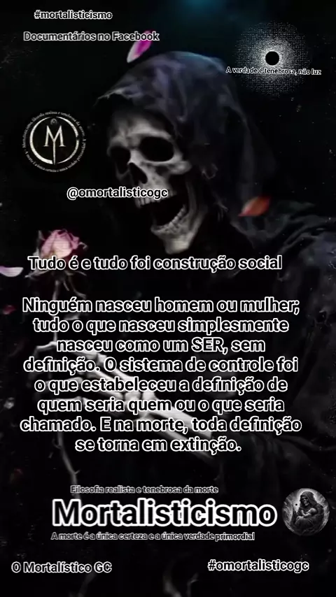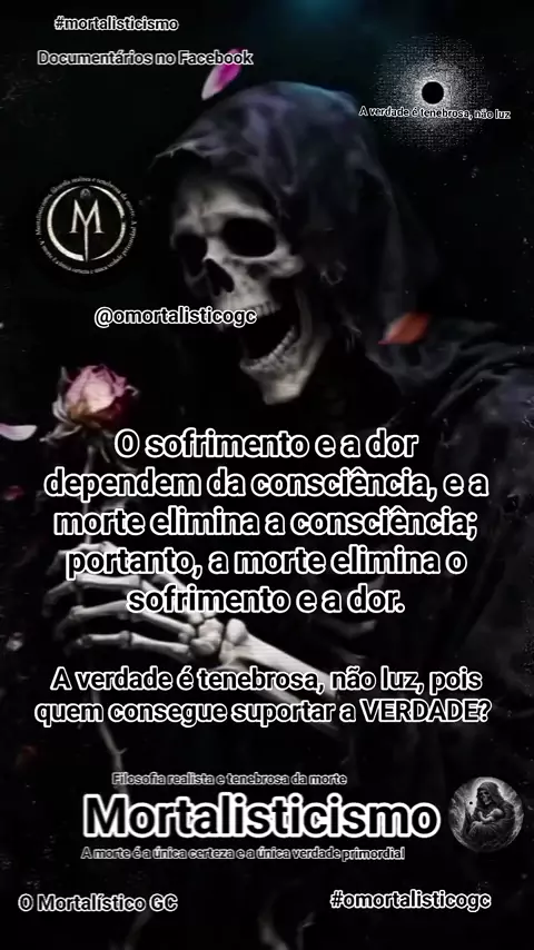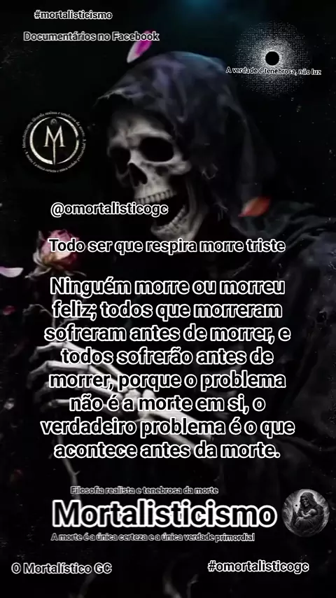 Mortalisticismo, a filosofia que nasceu do parto da morte. A filosofia realista e tenebrosa da morte. Destruindo a mentira da luz pra revelar a verdade da escuridão.