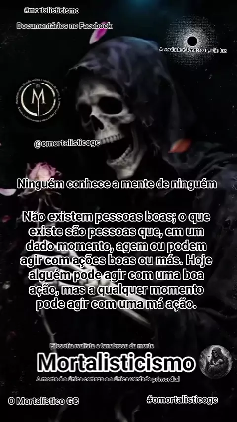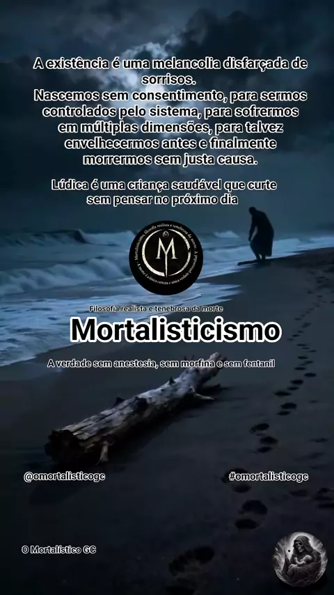 O mortalisticismo é a filosofia realista e tenebrosa da morte; da verdade q a humanidade teme conhecer e compreender, pq a verdade da realidade não é luz; é escuridão. O filho da morte chegou.