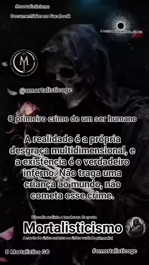 O Mortalisticismo apresenta uma visão tenebrosa da existência. - A existência é comparada a ideia folclórica do inferno, sugerindo que a existência é inerentemente sofrida e dolorosa. - O nascimento é a "porta de entrada", implicando que o indivíduo é lançado nesse inferno pelos pais sem escolha ou consentimento. - O sofrimento e a dor são o "castigo", uma consequência inevitável da existência. A dor é "multidimensional", abrangendo aspectos físicos, emocionais e psicológicos... ( Instagram)