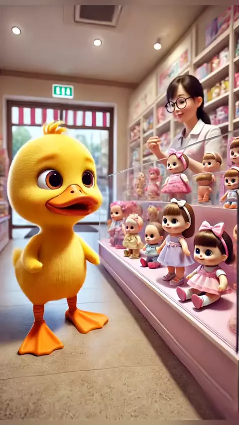 Patinho comprando uma bonequinha para a sua amiguinha 🩷