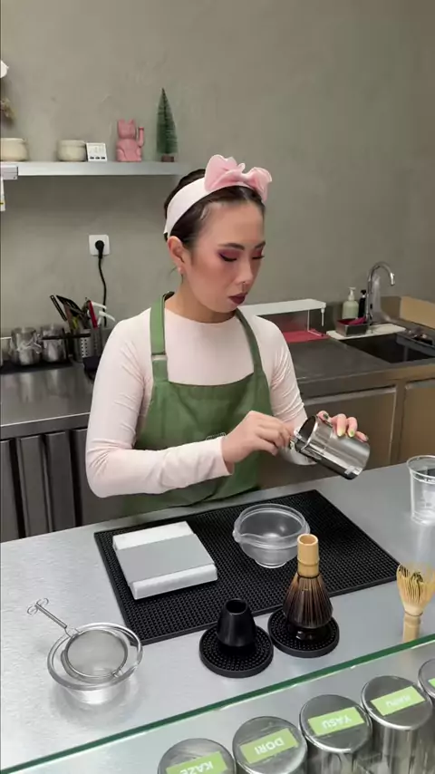 Karena Dubai pistachio lagi rame, kita bikin versi matcha-nya aja deh 😚 Matcha Dubai Pistachio 🍵 by Matcha Bae × OneBiteBigBite available mulai 13 Feb 📍 Kelapa Gading & PIK #matcha #cafe #bakery