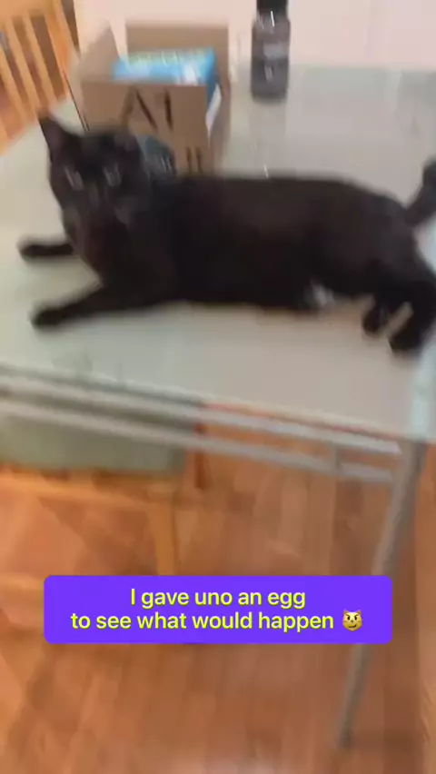 I gave Uno an egg to see what would happen 😼 #oneeareduno #blackcats #cats #pets
