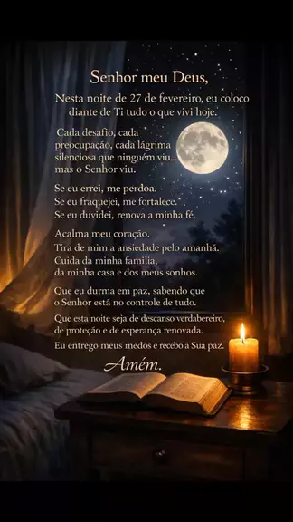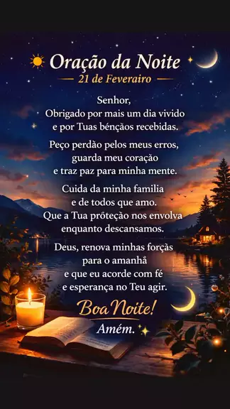 Quando o dia termina, é hora de desacelerar, agradecer e entregar tudo nas mãos de Deus. 🌙✨ Que essa oração da noite acalme seu coração, renove suas forças e traga um sono tranquilo e protegido. Independentemente de como foi o seu dia, sempre existe um novo amanhecer preparado para você. 🙏 Antes de dormir, respire fundo, confie e permita que a paz invada sua alma. 💬 Comente “Amém” e envie para alguém que precisa dessa oração hoje. #OraçãodaNoite #BoaNoiteComDeus #GratidãoSempre #Fé #DeusNoCom