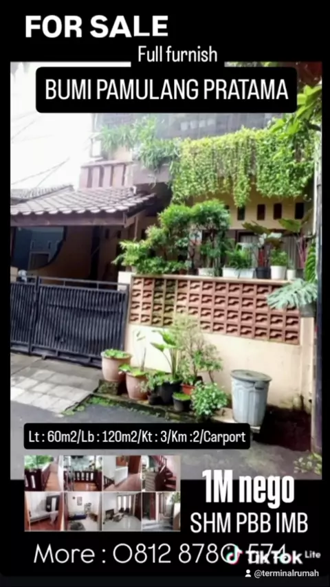 for sale lokasi pamulang. didalam perumahan yg nyaman bebas banjir. cuman 1M bisa nego. more : 0812 8780 574 #terminalrumah #jualrumah #carirumah #pamulang