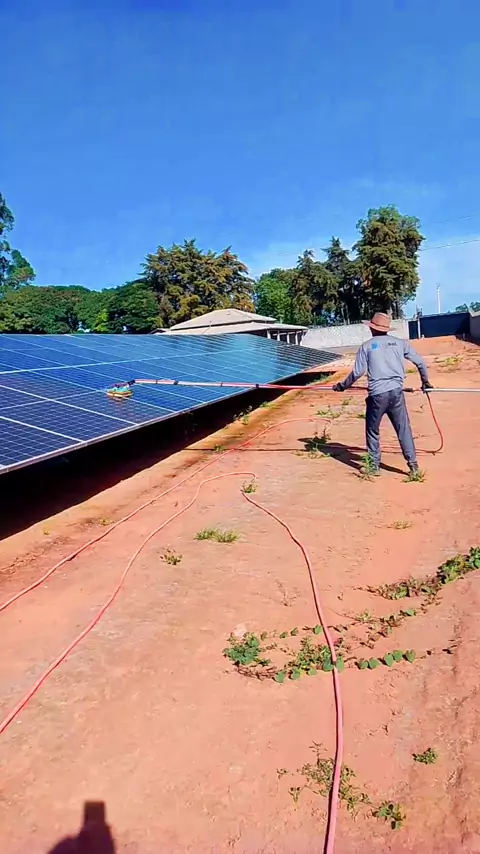 Lavagem das placas solares... Resulta em tirar a poeira para que o calor possa filtrar nas placas. ( Ecosol condomínio solar)🌥️🌤️