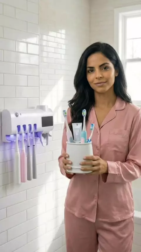 ❌ Chega de copos que acumulam sujeira ✅ Porta-escovas fechado, organizado e higiênico 💰 Menos de R$40 🛒 Já garante o seu no carrinho