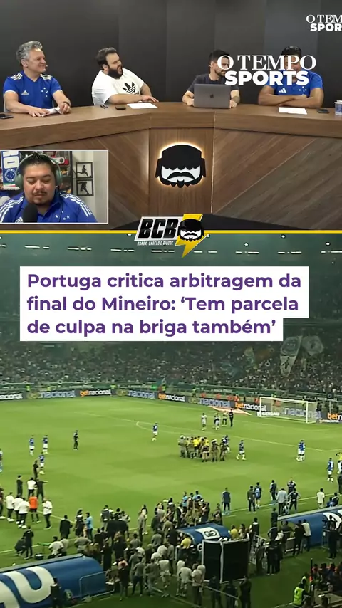 NA BRONCA - A final do Campeonato Mineiro entre Cruzeiro e Atlético ficou marcada pela briga generalizada que ocorreu pouco antes do apito final. Na súmula da partida desse domingo (8), o árbitro Matheus Candançan relatou 23 expulsões de jogadores. No ''Barba, Cabelo e Bigode'' desta segunda-feira (9), o comentarista Portuga não poupou críticas ao árbitro paulista, pontuando sua parcela de culpa na briga. Confira! #otemposports #classico #atletico #cruzeiro #briga