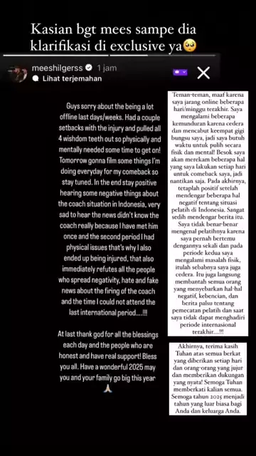 kasian banget mees tibatiba di hujat sampe dia klarikasi di exclusive nya🥺 mees tidak ada hubungannya sama pemecatan sty guys🥺🙏 #mees #meeshilgers #meesdihujat #meeshilgerstombeng #exclusivemees #meetimnas #shintaeyong