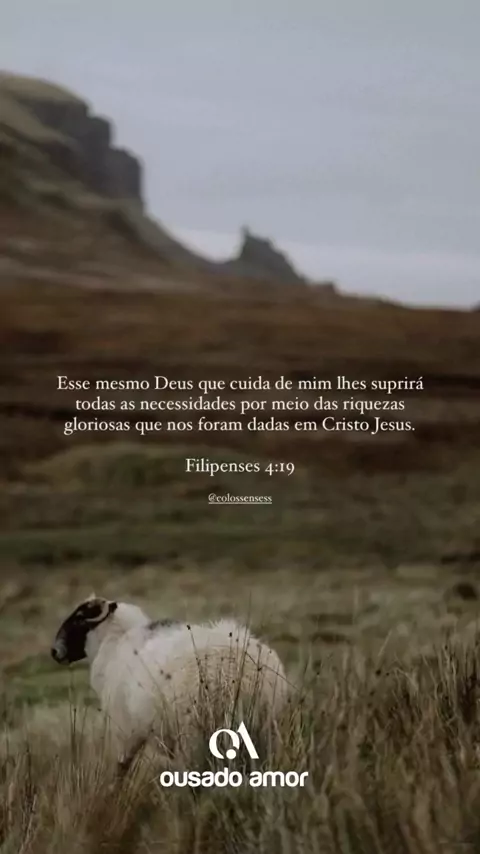 Esse mesmo Deus que cuida de mim lhes suprirá todas as necessidades por meio das riquezas gloriosas que nos foram dadas em Cristo Jesus. Filipenses 4:19 #ousadoamoremdeus