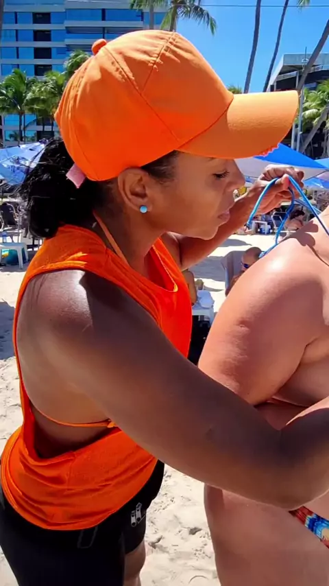 Aplicamos o melhor óleo bronzeador direto na praia 🌴 #Bronzeamento #bronze #marquinha #biquini #Praia