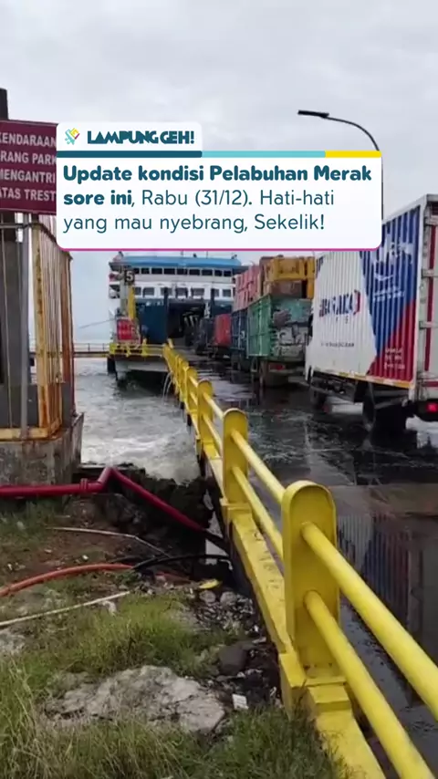 Pantauan Pelabuhan Merak sore ini, Rabu (31/12), kondisi perairan terpantau berombak tinggi hingga air laut menyiprat ke dermaga. Sekelik yang berencana menyeberang diimbau waspada. Dok. Istimewa #LampungGeh #PelabuhanMerak #InfoPenyeberangan #CuacaEkstrem #OmbakBesar