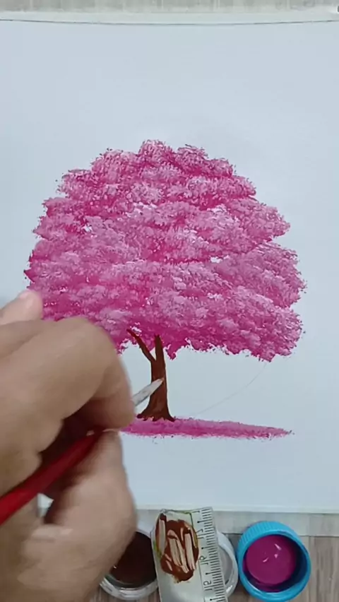 como pintar paisagem com caminho de árvore com árvore ipe amarelo e rosa #arte #comopintar #pintura #arvore #caminhodearvores