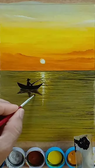 como pintar paisagem por do sol com pescador com tinta acrílica #tutorial #pinturaemtela #paisagem #arte #comopintar