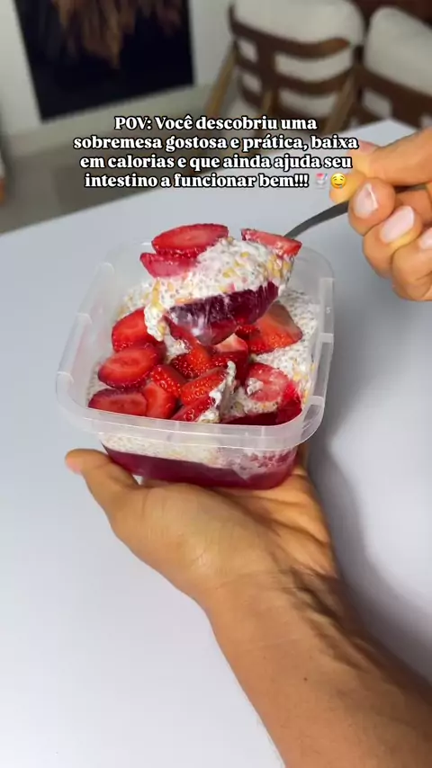 JƁ ESTƁ ME SEGUINDO? šŸ«µšŸ½šŸ„¹ -Faz a gelatina zero como de costume e leva pra geladeira para endurecer. Depois mistura chia e linhaƧa a gosto no iogurte natural desnatado (usei o meu caseiro) e aguarda uns 10 minutos atĆ© as sementes hidratarem pra deixar o iogurte consistente (quanto mais sementes, mais consistente o iogurte fica) Finaliza com frutas da sua preferĆŖncia e conserve na geladeira por atĆ© 4 dias! *Priorize frutas de baixa densidade calórica se vocĆŖ estĆ” em processo de emagrecimento.