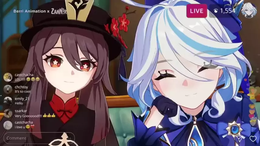Furina e Hu Tao cantando 🎀 Zhongli e Neuvillette dançando tudo 😂🕺 #GenshinImpact #Rungkad #Furina #Hutao