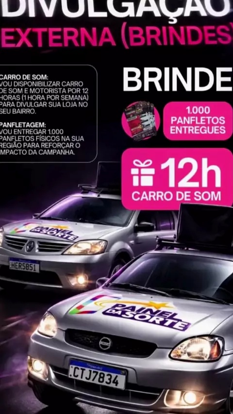 Sua marca em TODO o bairro! 🚀 Carro de som + Panfletagem. Quer que todo mundo conheça o seu negócio? O Painel da Sorte leva sua marca direto para o ouvido e para a mão do seu cliente! Carro de som e planfetagem estratégica para você vender mais. 📱 chame agora e participe da nossa campanha! #MarketingLocal #PainelDaSorte #Publicidade #Vendas