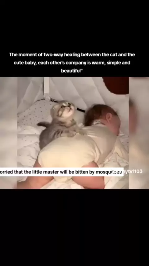 The moment of two-way healing between the cat and the cute baby, each other's company is warm, simple and beautiful"#funnyanimals#cat#funnycats#PetsOf#pet#funnycat