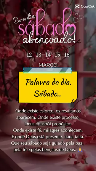 SÁBADO – 07 de Março Bom dia! Comece este dia acreditando, confiando e agradecendo. Quando entregamos nossos caminhos a Deus, o coração encontra paz e a esperança se renova. Que hoje você siga com fé, certo de que Deus está presente em cada passo, guiando, protegendo e abençoando sua vida. Confie… o melhor de Deus sempre chega no tempo certo. ✨🙏 🔥 #BomDia #SábadoAbençoado #DeusNoControle #Fé #Gratidão