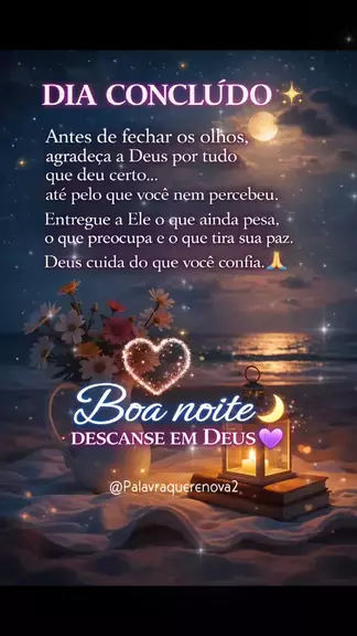 🌙 Antes de Dormir, Faça Isso… Antes de dormir, tire um momento para agradecer. Agradeça pela sua vida, pela sua família e por cada conquista — grande ou pequena — que Deus permitiu acontecer ao longo do dia. A gratidão acalma o coração, fortalece a fé e nos lembra que, mesmo nos dias difíceis, sempre existem motivos para agradecer. Que a paz de Deus envolva sua noite, renove suas forças e prepare um novo amanhecer cheio de bênçãos. #BoaNoite #Gratidão #DeusNoControle #fe #noiteabençoada