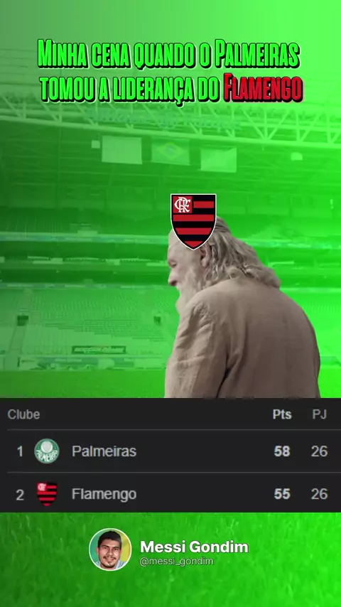 Essa foi a sensação que me deu quando o Palmeiras assumiu a liderança de um Flamengo que não deixava, porque estava sempre ganhando. 🔥💚 Comenta aí o que achou! 👇 #palmeirasforte #gigantepalmeiras #memedofutebol #futebolraiz