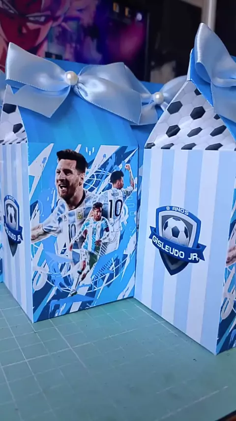 Tema Messi Caixas Milk, Pirâmide, Suspiro e Coração Linha Clássico R$2,75 cada Personalizamos todos os temas #messi #personalizadosmessi