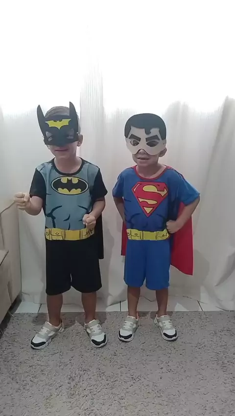 O Batman e o Superman estão prontos para salvar a festa do colégio Ina com muita diversão e energia 😄🦸🏻‍♂️🦇😍. #festadecarnavalnaescola #carnaval #fantasia #batman #superman