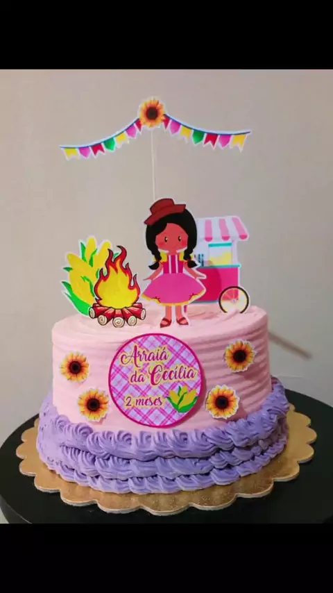 Bolo Arraiá 🌜🩷 #confeitaria #bolo #doce #boloconfeitado #deliciasdapam