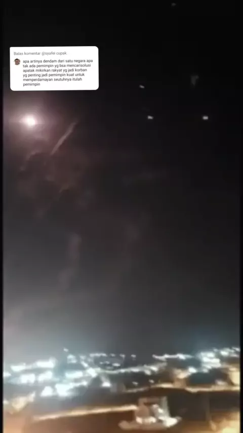 Menanggapi pada @syafei cupak.(O150001344294047) Iran mulai menyerang Israel usai meluncurkan drone hingga roket pada Sabtu (13/4). Serangan itu mulai berimbas ke Israel, yakni dengan sirene yang terdengar di berbagai wilayah negara tersebut. Israel juga dilaporkan mulai melaksanakan intersepsi aktif terhadap serangan drone dan roket Iran. IDF mengklaim terdapat lebih dari 100 drone yang diluncurkan Iran dalam serangan pertama.