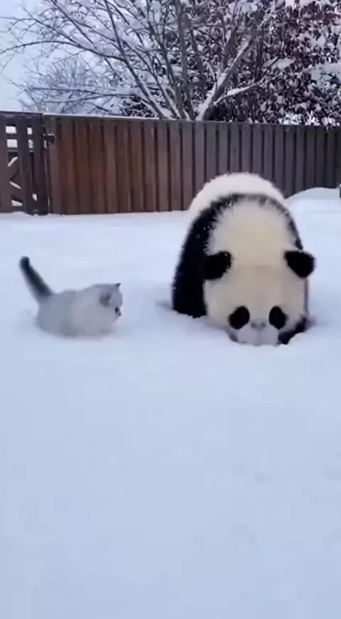 Panda afunda o gatinho na neve #animais #maisviews #fy #panda