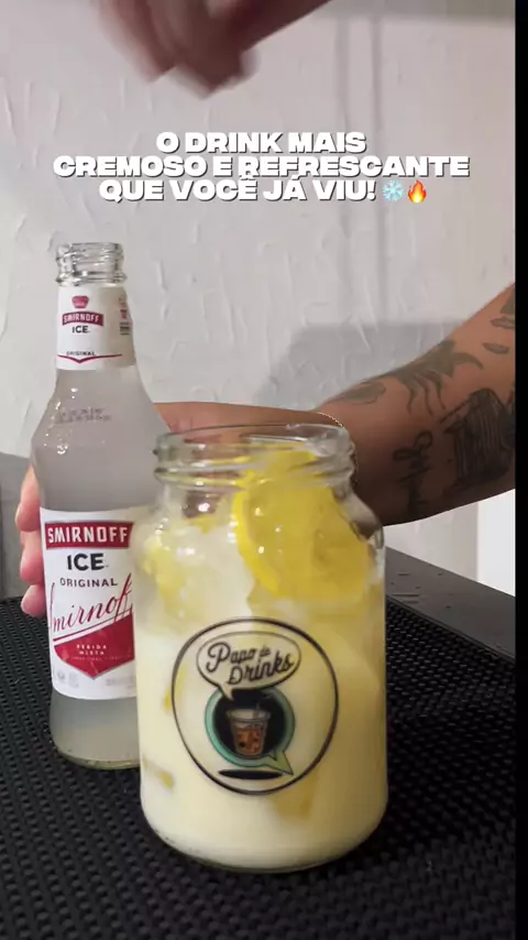 Surpreenda seu paladar com o Mousse Ice Smirnoff, um drink único e delicioso! Ele começa com uma camada cremosa de mousse feita com limão siciliano e leite condensado, que traz um toque doce e cítrico irresistível. Em seguida, é completado com camadas de gelo picado, fatias de limão fresco e a refrescância do Smirnoff Ice, criando uma mistura perfeita entre o cremoso e o gelado, com um sabor que vai conquistar você a cada gole! Ideal para quem busca uma experiência refrescante e cheia de sabor!
