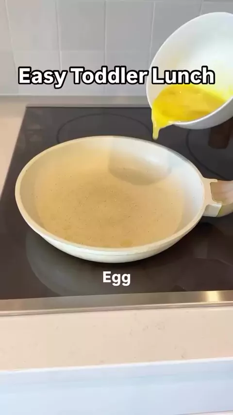 Super easy toddler lunch!! This is such an easy+yummy lunch (or breakfast) to feed your toddler! If your little won't eat anything with broccoli in it, you could just leave it out! How to make: 1. Crack 2 eggs into a bowl and stir to mix. 2. Oil a pan over medium heat. Add the egg. Sprinkle some cheddar cheese onto the egg. Sprinkle raw broccoli or another veggie on top.  3. Let the egg cook a little bit (not all the way) and add a cooked tortilla on top. Let the egg finish cooking. 4.