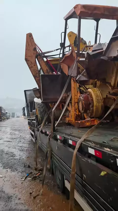 Mesmo em dia de chuva não tem moleza. 🌧️ Tamo descarregando o caminhão com umas sucatinhas pra vocês. Quem precisar, é só chamar! 🔧🚜 #maquinas #maquinaspesadas #retroescavadeira #jcb #sucata