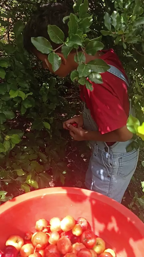 colhendo acerola para fazer um delicioso suco. #SegurançapraKwai