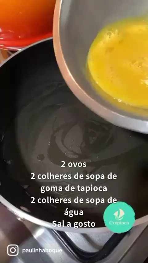 Ingredientes: 2 ovos 2 colheres de sopa de goma de tapioca 2 colheres de sopa de água Sal a gosto #crepioca #Receita #culinaria