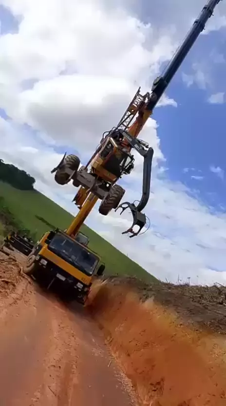 Máquina que virou embaixo do barranco sendo resguardada
