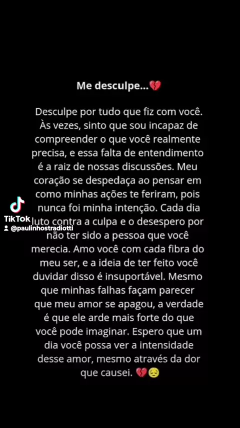 💔 Me desculpe… Errei tentando amar, feri sem querer. Meu amor nunca apagou — só se perdeu na dor. Que o tempo cure e a paz encontre caminho. 🌱✨ #Desculpa #AmorVerdadeiro #Cura #Recomeço #Paz