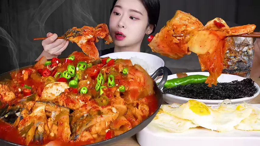 입맛 싹,,! 매운 묵은지 고등어조림 🔥 레시피! (feat. 곱창김, 계란후라이, 대접밥) Spicy Braised Mackerel with Kimchi 🔥 Korean Home Meal! Spicy Food Eating 辛い熟成キムチサバの煮付け🔥 炊きたての白いご飯&目玉焼き&海苔! 韓国のおうちごはん! Ikan makarel pedas rebus dengan Kimchi 🔥 Masakan rumahan Korea! Cá thu kho với kim chi 🔥 Ăn cùng cơm trắng & Trứng chiên & Rong biển! . . .#mukbang#asmr#eating#food#koreanfood