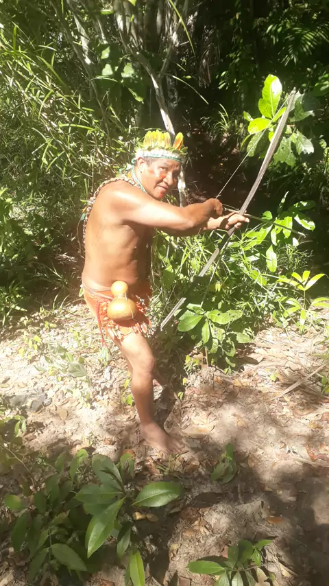 cacique Rekwei flechando peixes.