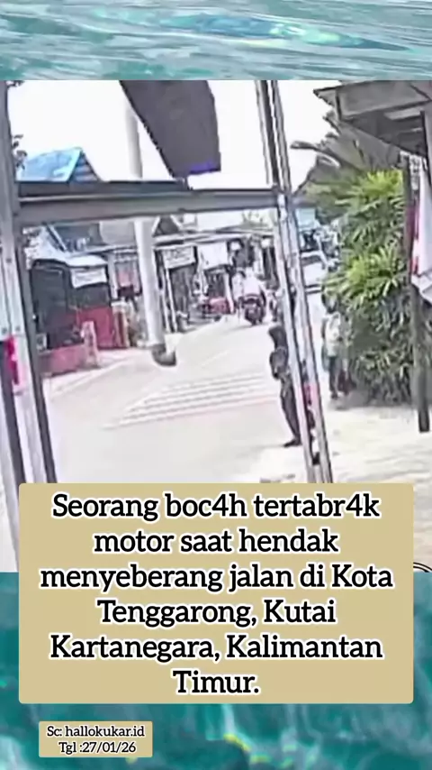 Seorang b0c4h tertabr4k motor saat hendak menyeberang jalan di Kota Tenggarong, Kutai Kartanegara, Kalimantan Timur. #lakalantas #kecelakaan #tabrakan #jalan #motor