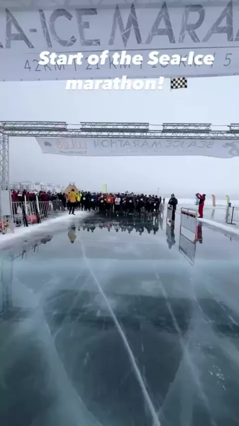 Essa é a Sea-Ice marathon 2024 que ocorre em Luleå! 🇸🇪 @explore_lulea 📽 @schaatsenlulea #seaicemarathon #pensologocorro #maratonanogelo #corridaderua #correrévida