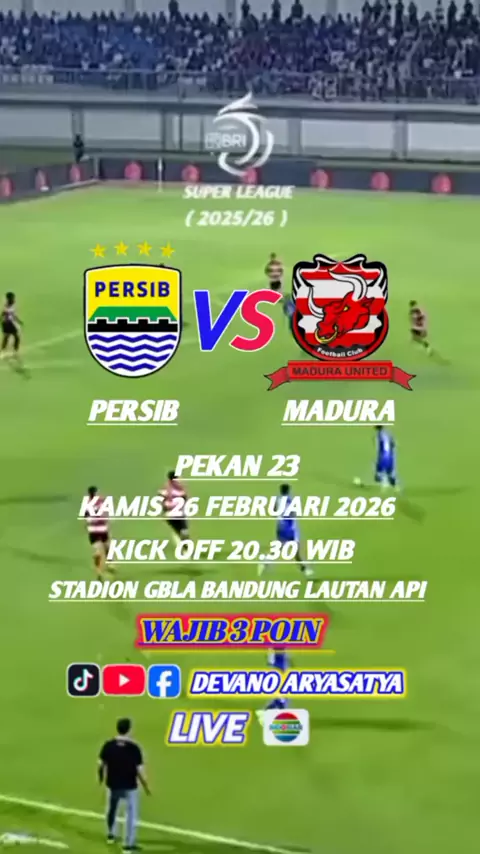 Wajib Menang 3 Poin Persib VS Madura Kamis 26 Februari 2026