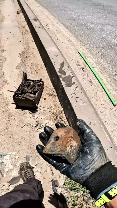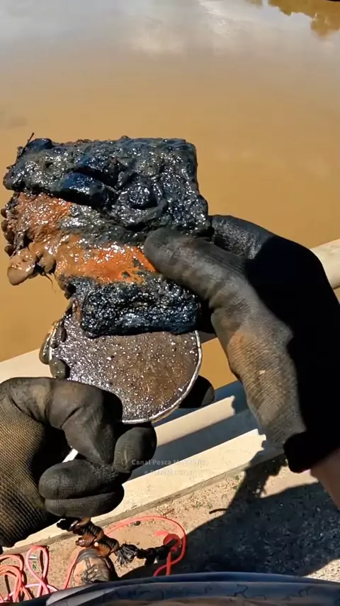 Encontrou um meteorito na pesca magnética, quando acha que já pegou de tudo olha o tamanho da pedra 100% magnética que ele pegou.
