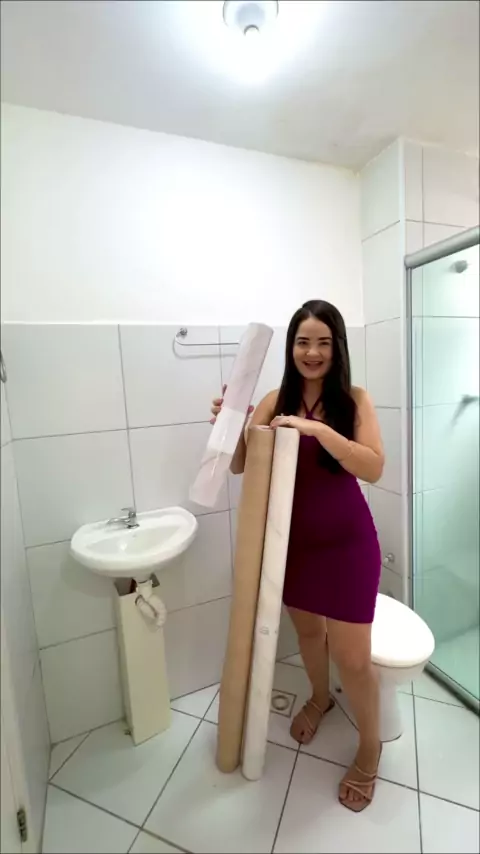 Com os adesivos Decorativos você pode transformar qualquer lugar da sua casa de um jeito fácil, rápido e sem sujeira! Nessa transformação usamos o nosso Papel de Parede Adesivo Mármore Requinte com a película protetora. Para a parede do box, o chão e para o envelopamento de móveis foi utilizado o nosso Revestimento Madeira Linheiro Marfim e para a parte de fora, usamos para o envelopamento de piso o nosso Adesivo para chão Mármore Calacata!#banheiro #homedecor #papeldeparede #DIY #revestiment