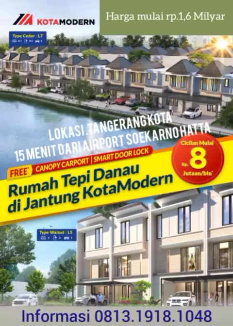 *KotaModern* Cikokol mempersembahkan produk unggulan terbaru!! *MODERN WATERFRONT RESIDENCE* Hunian mewah dengan view danau โญ๏ธ Lokasi sangat strategis : * 50 meter ke Sekolah Harapan Bangsa ๐Ÿซ * 500 meter ke Padang Golf Modern & Country Club โ›ณ๏ธ * 800 meter ke Sekolah BPK Penabur ๐Ÿซ * 800 meter ke Mayapada Hospital ๐Ÿฅ * 800 meter ke Hypermart ๐Ÿ›’ * 850 meter ke Modern Town Market ๐Ÿ›๏ธ *Tipe Unit* ๐Ÿ“Œ*5x10 - 3 lt harga 1.6 M an* 081319181048 #propertiy #rumah #rumahmewah