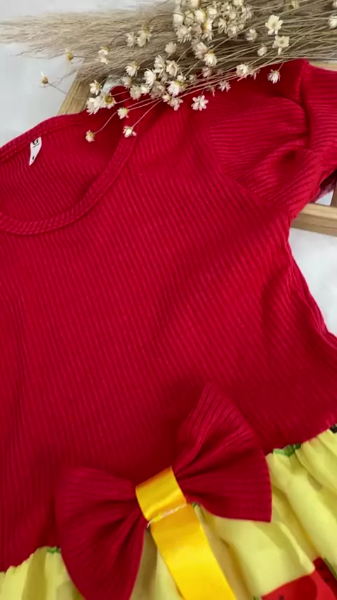 Vestido Festa Casual Manga Curta Infantil Magali