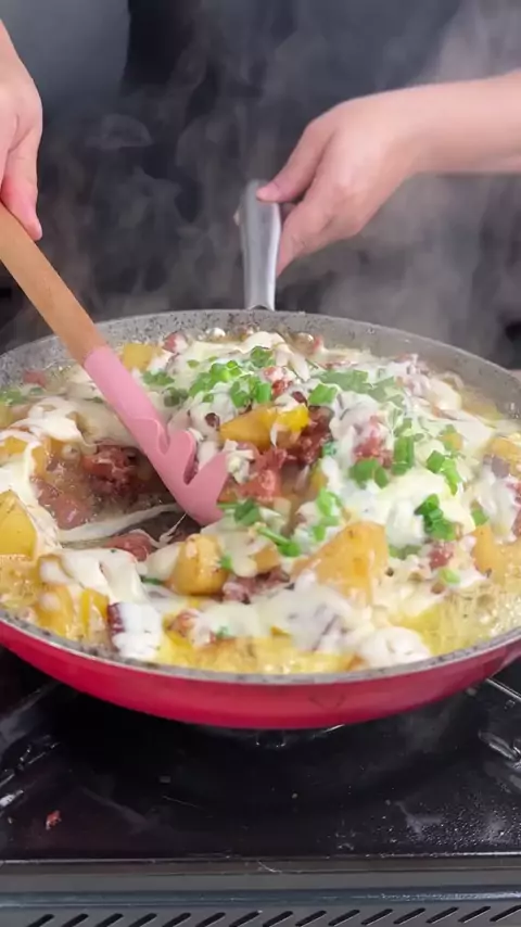 Batata mexicana. INGREDIENTES 2 colheres de sopa de manteiga Azeite 3 dentes de alho ralados 600g de batatas 1 colher de chá de sal Meia colher de café de pimenta do reino 150g de bacon 600g de linguiça toscana Folhas de louro 1 colher de chá de páprica 1 colher de chá de orégano 1 colher de chá de pimenta calabresa 50ml de água 1 cebola 1 pimentão amarelo 50ml de água Cheiro-verde a gosto Queijo muçarela ralado a gosto Queijo