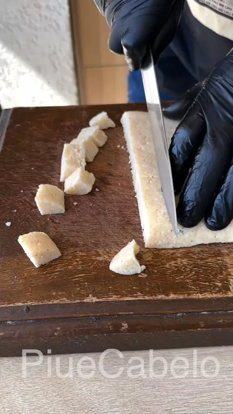 Dadinho de tapioca Em uma leiteira adicione 2 talagadas de leite e deixe ferver enquanto isso vamos ralar o queijo coalho e reserve. . . . Em uma bacia adicione 1 xablau de tapioca granulada, adicione o queijo 🧀 , 1 xablau de pimenta 🌶️ do reino , sal e páprica, adicione o leite fervido e misture e reserve até o leite ser todo sugado (como no video). . . . Depois da massa descansar, pegue um refratário cubra com um saquinho e coloque a massa e espelhe bem com ajuda de uma espátula, depois