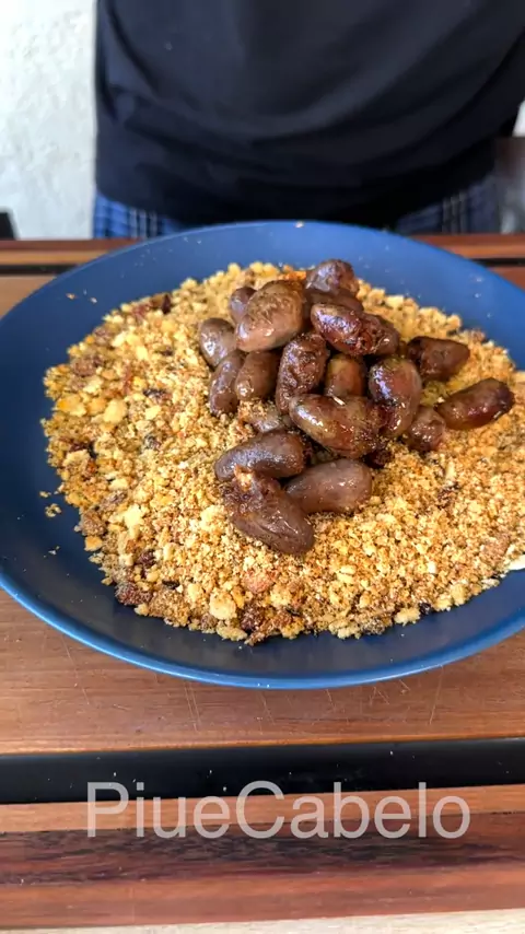 Tempere o coração 🐔❤️com um xablau de páprica, sal, pimenta do reino, fumaça em pó e uma talagada de shoyu . . Deixe o tempero curtir um pouco e já joga na airfryer a 200° até assar . . . Frite o bacon e depois acrescente a cebola e coloque a farinha, uma talagada de manteiga e vai mexendo até a farinha ficar crocante . . Só juntar o coração com a farofa e ser feliz 😎.