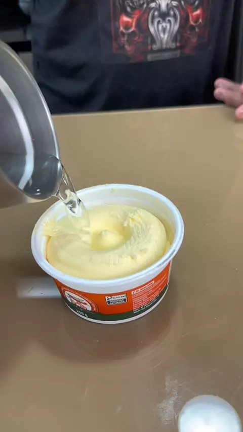 Sorvete frito 🍨 Pegue o sorvete e vamos empanar no cereal , depois envolva no papel toalha e leve para freezer até ficar bem dura. . . . Enquanto endurece vamos fazer a massinha , vamos usar 4 xablaus de farinha de trigo e 4 talagadas de água , misture bem até ficar consistente. . . . Depois que endureceu as bolas , vamos passar na massinha e depois na farinha panco, agora vamos fritar no óleo bem quente 🥵 E está pronto nosso sorvete frito! É só jogar pra dentro.