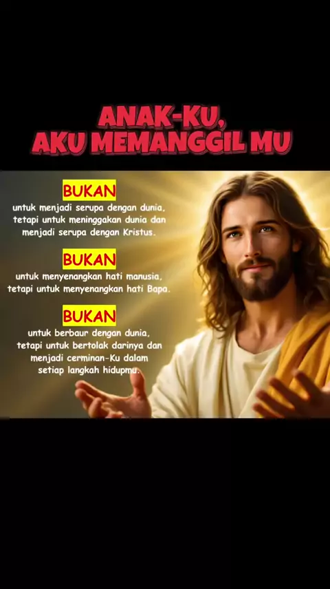 Jangan pernah takut dunia menolakmu karena karena kamu berbeda, tapi takutlah di hari akhir Tuhan Yesus menolakmu dan berkata : "Enyahlah! Aku tidak mengenalmu". . Sebab hidupmu bukan lagi milik dunia, hidupmu adalah milik Allah yang telah mengasihimu terlebih dahulu. .#Jesusiscallingyou#Childrenofgod#anaktuhanyesus#Jesuslovesyou#Jesusblessyou